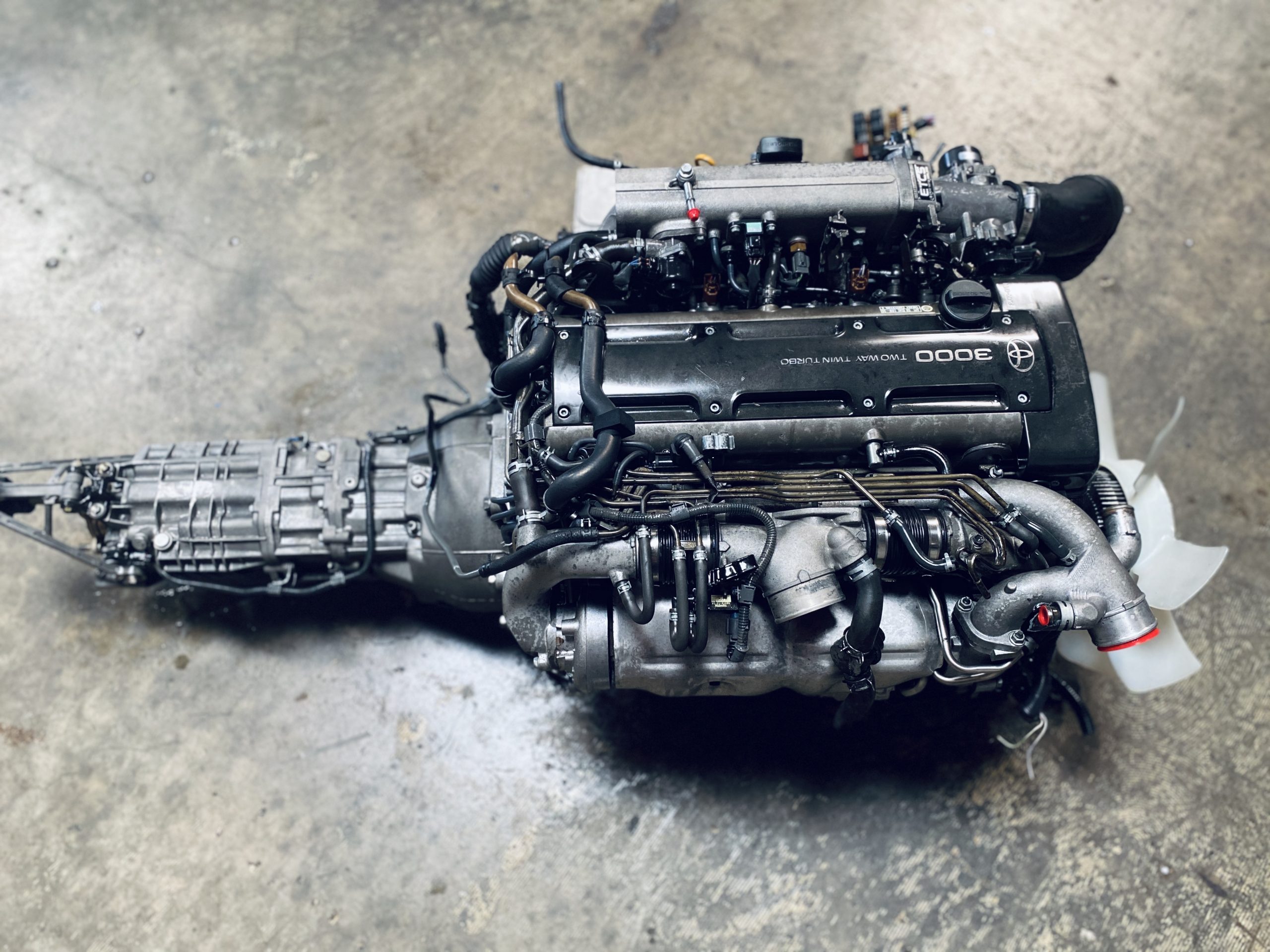 – Genuine Low Mileage Used Complete 2JZGTE Non-VVTi Twin Turbo Rear Sump 3.0L Engine with V160 Getrag 6 Speed Manual Transmission MK4 JZA80 Toyota Supra.